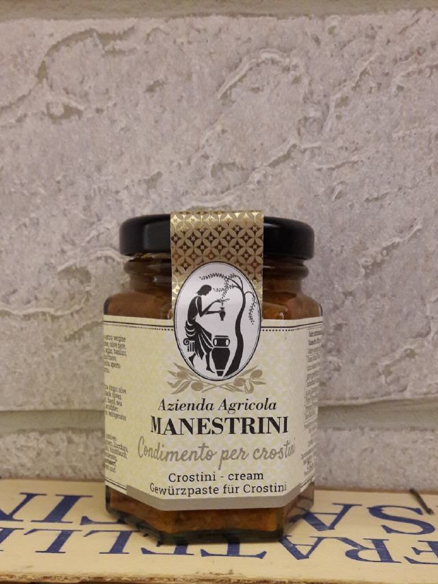 Zutaten: getrocknete Tomaten 20%, grüne Oliven, Zwiebel, Auberginen, Tomaten, Zucchini, schwarze Oliven, Kapern, Käse, Knoblauch, Petersilie, Basilikum, Sardellen, Olivenöl extra vergine, Meersalz, Weinessig, Weisswein, Zucker,
