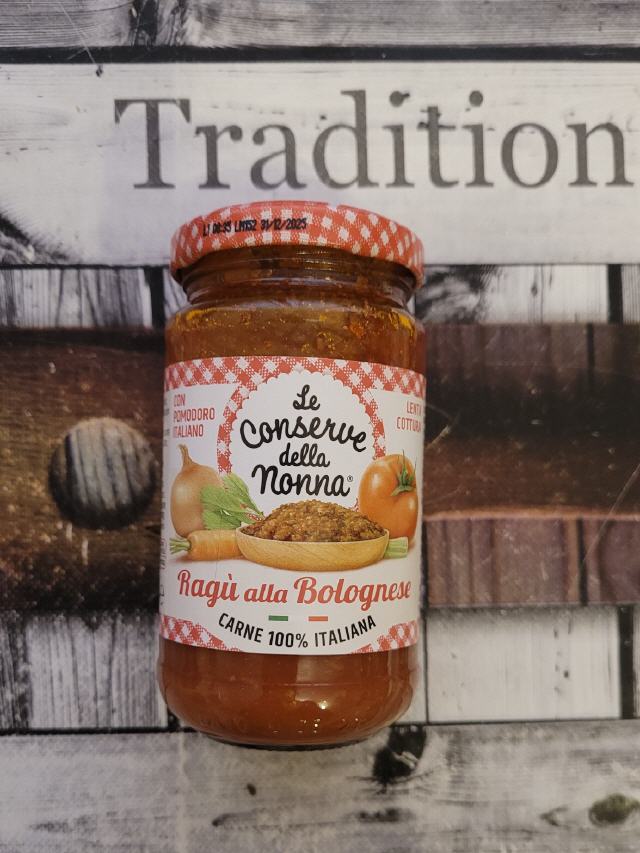 Zutaten: Halbkonzentrierte Tomate 53%, Rindfleisch 17%, Schweinefleisch 10%, Wasser, Mischgemüse in unterschiedlichen Anteilen (Karotten, Sellerie, Zwiebel) 4%, Sonnenblumenöl, Salz, Pfeffer. OHNE GLUTINE.